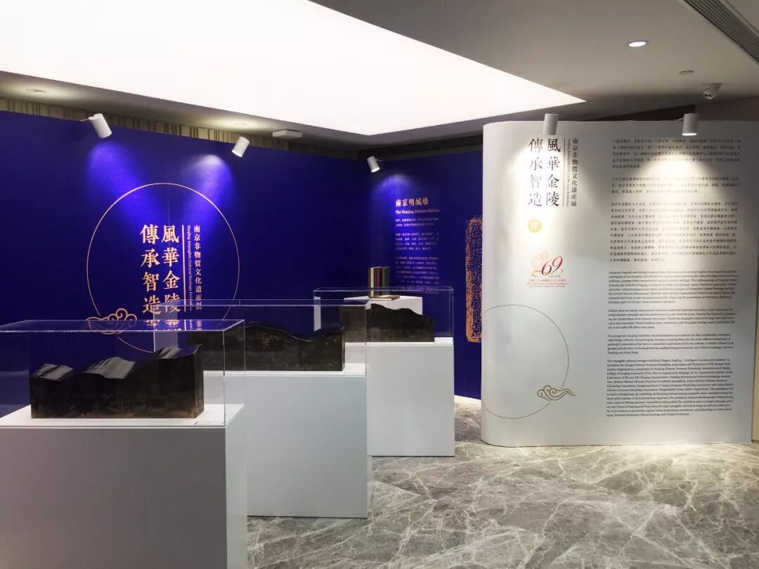 充分发挥设计学院创新驱动的力量,展览现场,为了更好地让香港市民了解南京文化特色,在设计表现上特别将每一项非遗项目都对应一系列历史图表、工艺图表梳理,与实物展示形成呼应,形成多层面的观看。为更好地突出此次展览“传承智造”的主题,特别从南京艺术学院选出张承志教授的漆艺系列作品《城墙砖》,速泰熙教授设计系列作品《铭文天下》,以及设计学院时尚与文创专业的系列现代创意物品进行展示,以当下性的研究方式追溯与呼应文化传承的历史脉络。